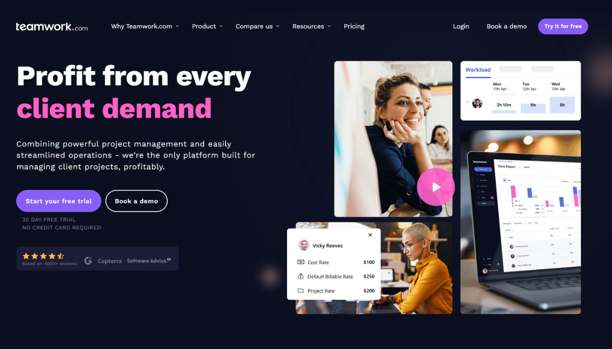 - Teamwork: Best for billing-focused agencies managing multiple clients and retainer work.