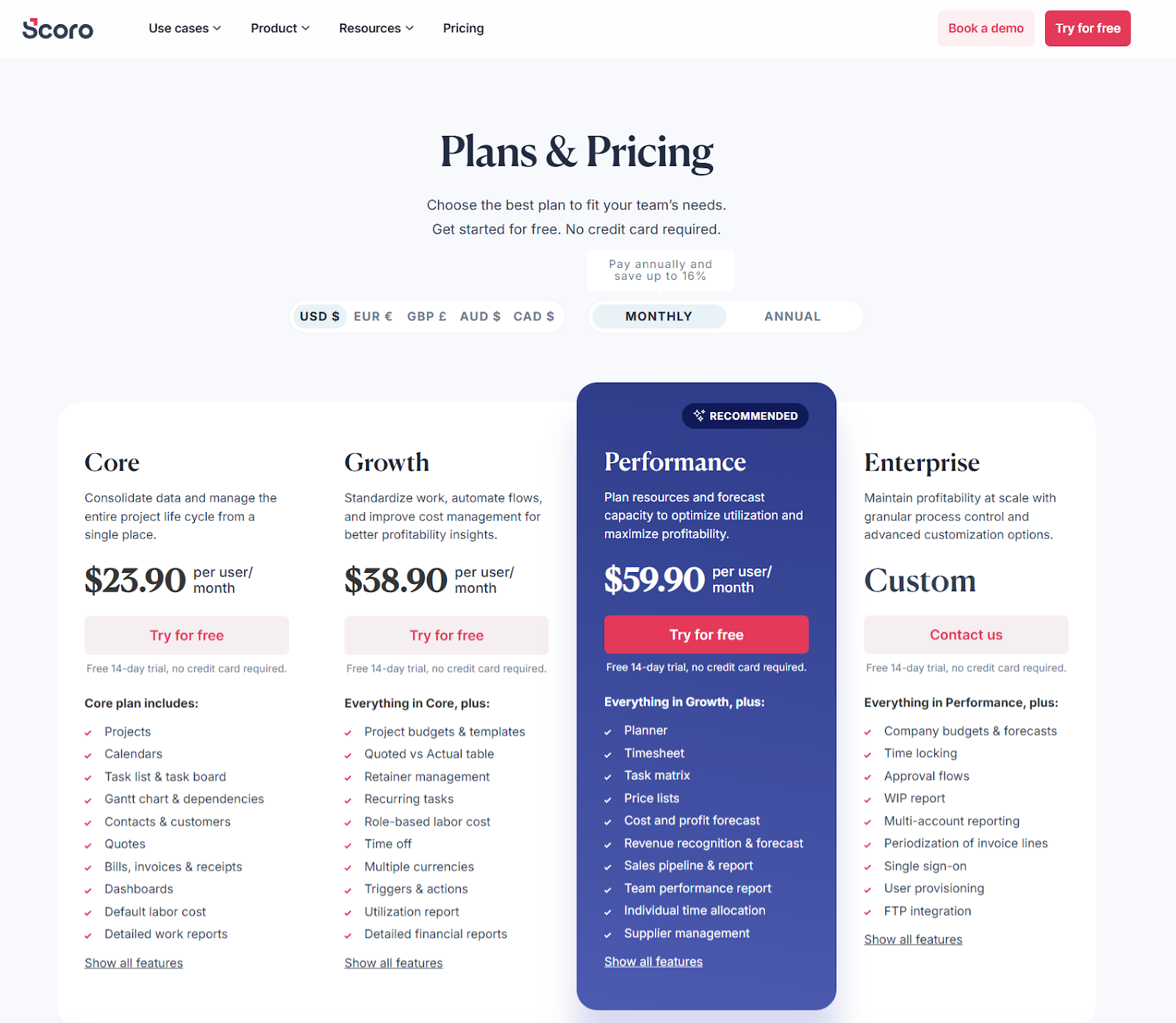 Scoro offers a 14-day trial and flexible plans designed for teams of all sizes, from startups to enterprises.