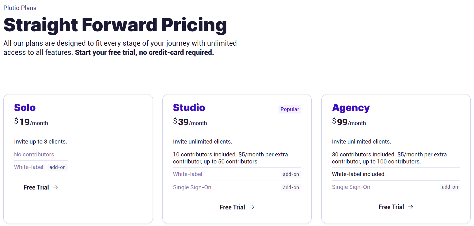 | Plutio | Customizable lead records | Multiple views (Kanban/calendar) | Yes | $19/month |