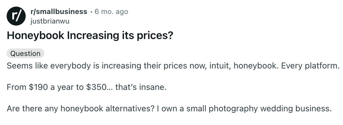 HoneyBook’s recent price increase has customers reeling.