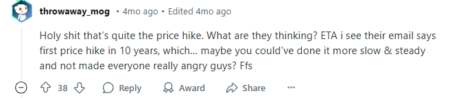 Even though it’s the first price increase in 10 years, users think that the value proposition is much lower at this point.