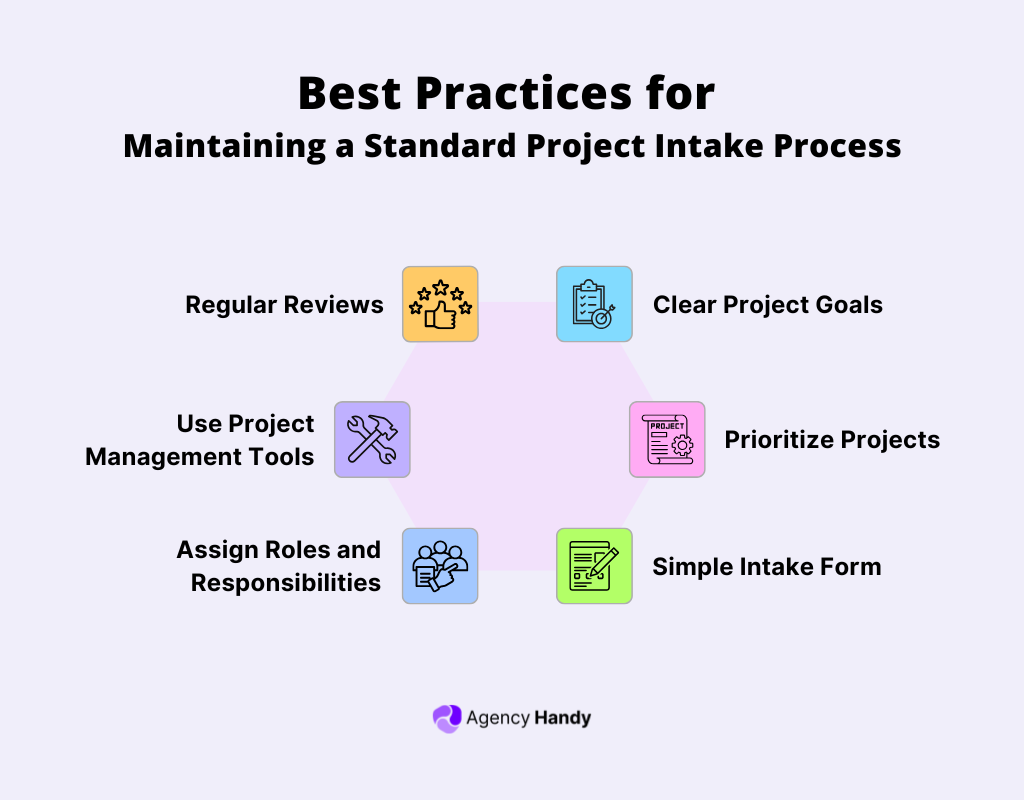Conducting regular reviews of incoming projects is critical for maintaining an efficient process. A report from PMI shows that 75% of high-performing teams regularly review their processes to identify and solve problems early.