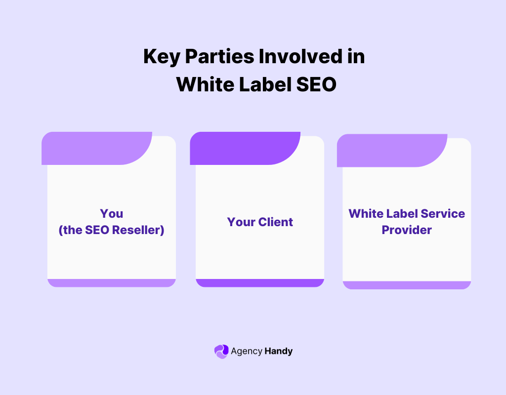In a white-label SEO arrangement, three main parties come into play: